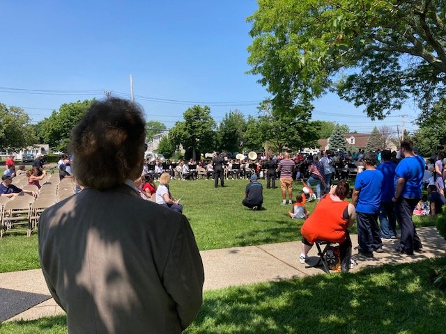 The gathering at the Middle School started with a parade led by Hicksville's American Legion, members of the H.H.S. Marching Band, followed by various community organizations to include the H.F.D. Fire Fighters, H.F.D. Jr. Fire Fighters and Marching Band, paid for by the H.F.D. for the occasion.