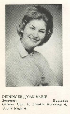 My friend, Joan Mackin (Joan Deininger) also Class of 1960, told me of the website for the Alumni Association. Please add my e-mail address to your list. I still live in Hicksville. My parents are still living on St. John's Avenue. By the way, my brother, Michael, Class of 1965, was in the Army during the Vietnam War years. He was stationed in Korea patrolling the border between North and South Korea with his Guard Dog. I am going to mention the website to him. Hopefully, he will sign up too. All three of my sons John, James and David, graduated from HHS, Classes of 1985, 1987 and 1992.