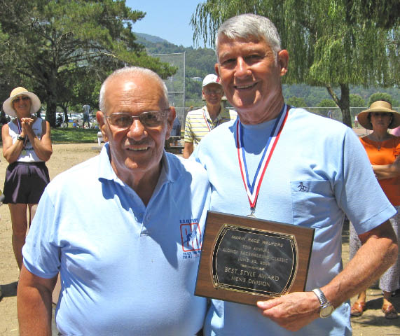 In this regard, I thought you would like to know that I'm still out there doing my thing....by sharing this forwarded e-mail with attached June 22nd picture of me, receiving the Men's Best Style Award at this year's Alongi Racewalking Classic (our annual major racewalking event). Pictured with me is Frank Alongi, who for the past 50 years has been a nationally renowned racewalking teacher, coach and judge; notably having been a former Olympic middle distance runner for Italy.