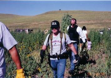 Illegally grown drugs." The rancher says, "Okay, but don't go in that field over there," as he points out the location. Don't go in there!!!