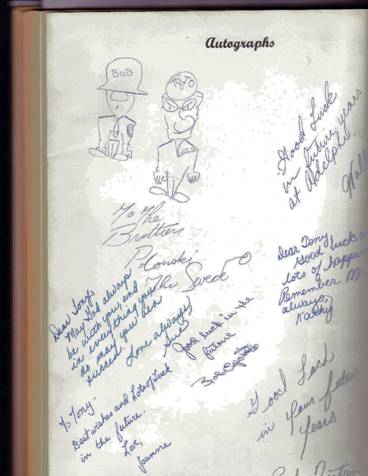 Thank you for the card. You are such an incredible person, caring and thoughtful of everyone. I only wish I had known you earlier when I had better mobility. Send my best to Ted Swedalla when you can. Attached is his autograph in my yearbook. I spotted it the other day when I was looking up someone. He wrote it to both me and my brother (who didn't buy his own book).